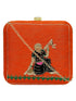 HORRA ZARI WORK BOX CLUTCH ORANGE WITH DETACHABLE CHAIN
